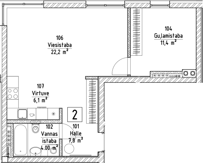 Uzstādītas iebūvētas mēbeles un tehnika no vadošajiem Eiropas zīmoliem: Colombini Casa virtuves un skapji, Blum furnitūra, Franke, Hansgrohe un Villeroy & Boch santehnika, LG sadzīves tehnika, Zonda Lighting apgaismojums.